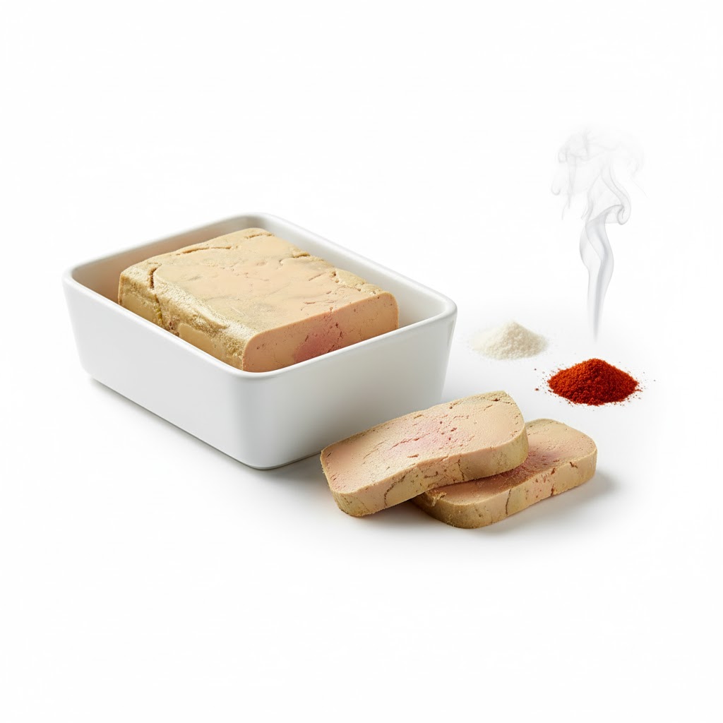 Foie gras mi-cuit au bain-marie, fondant et savoureux. Disponible nature (sel & poivre blanc), au piment d'Espelette, ou en version fumée. Production artisanale française.