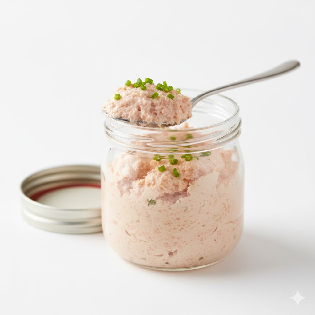 Rillettes artisanales préparées avec du cœur de filet de saumon fumé, citron vert, échalote, beurre et ciboulette. Parfait pour l'apéritif ou sur des toasts.